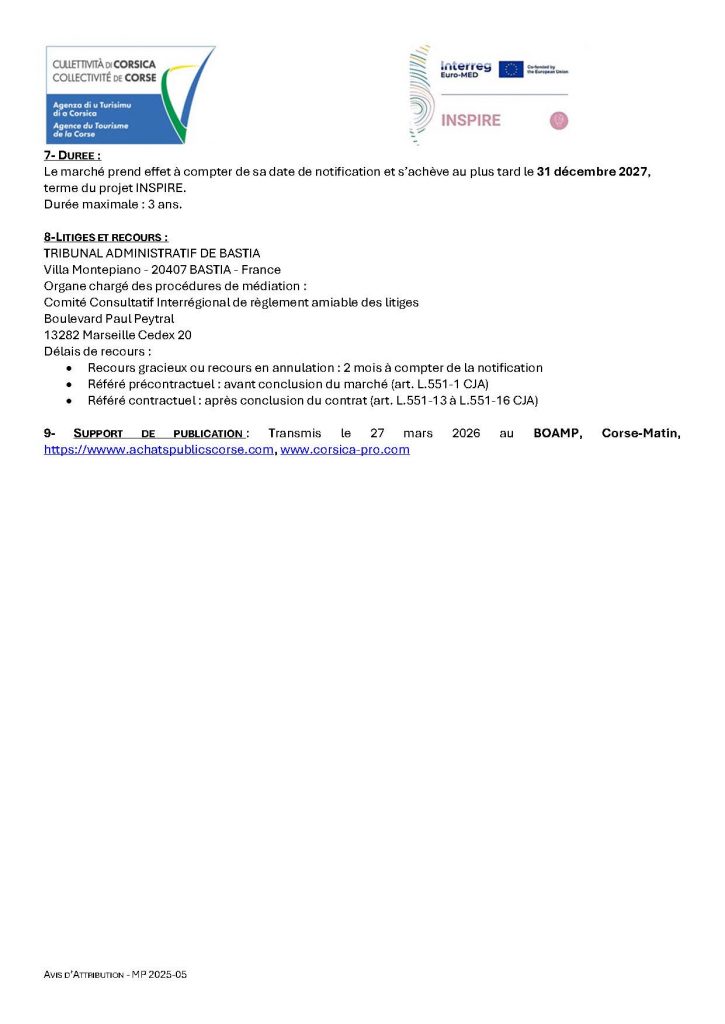 AA MP 2025-05 : Mission d’assistance à maîtrise d’ouvrage pour la mise en oeuvre du projet de coopération européenne INSPIRE (programme Interreg Euro-Med 2021-2027).