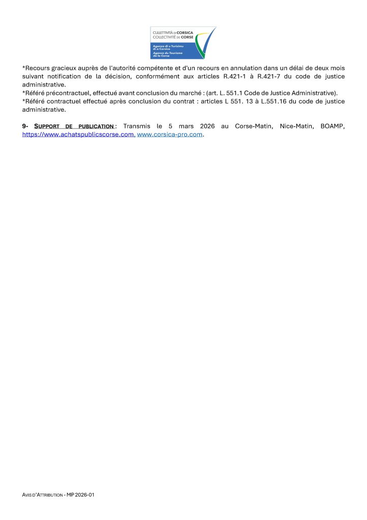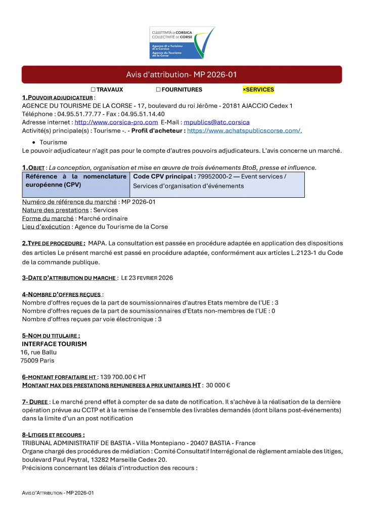 Avis d’attribution- MP 2026-01