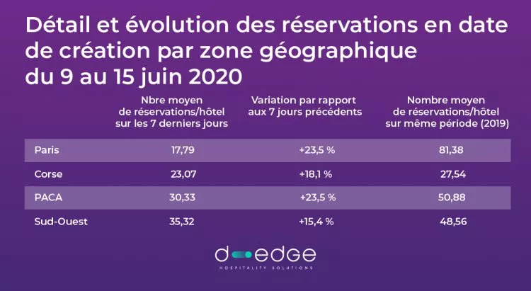 Malgré cette forte hausse des prise de commandes, la montée en charge des réservations pour la saison été reste encore insuffisante notamment sur le mois de juillet. Ainsi si l’on regarde les réservations enregistrées pour les samedis du mois de juillet la Corse est à 49%, le Sud-Ouest à 46% et PACA à 32% des réservations enregistrées pour les samedis de juillet 2019.