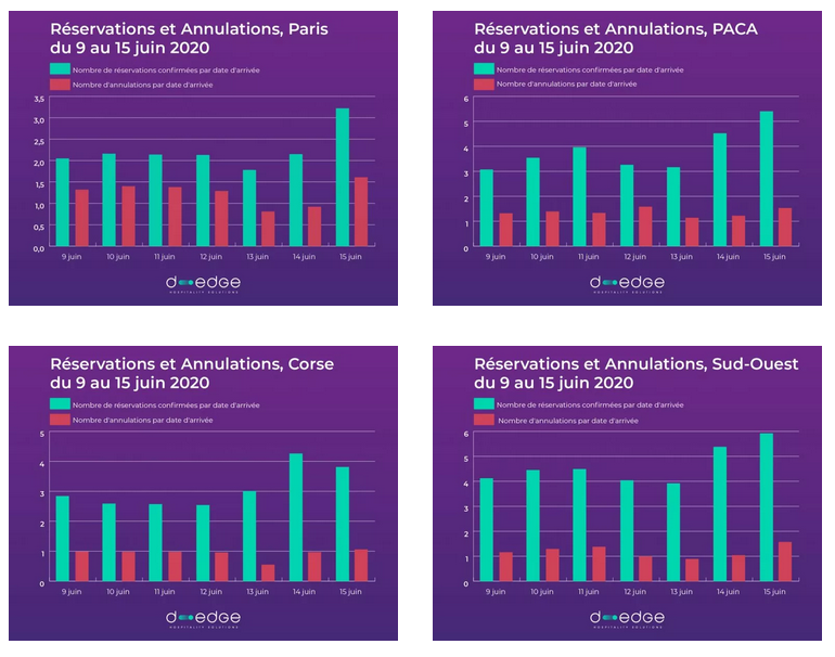 Toutes les régions affichent un solde positif de réservations versus les annulations. Tout naturellement après plusieurs semaines de croissance des réservations, les annulations tendent à leur tour à remonter légèrement.
