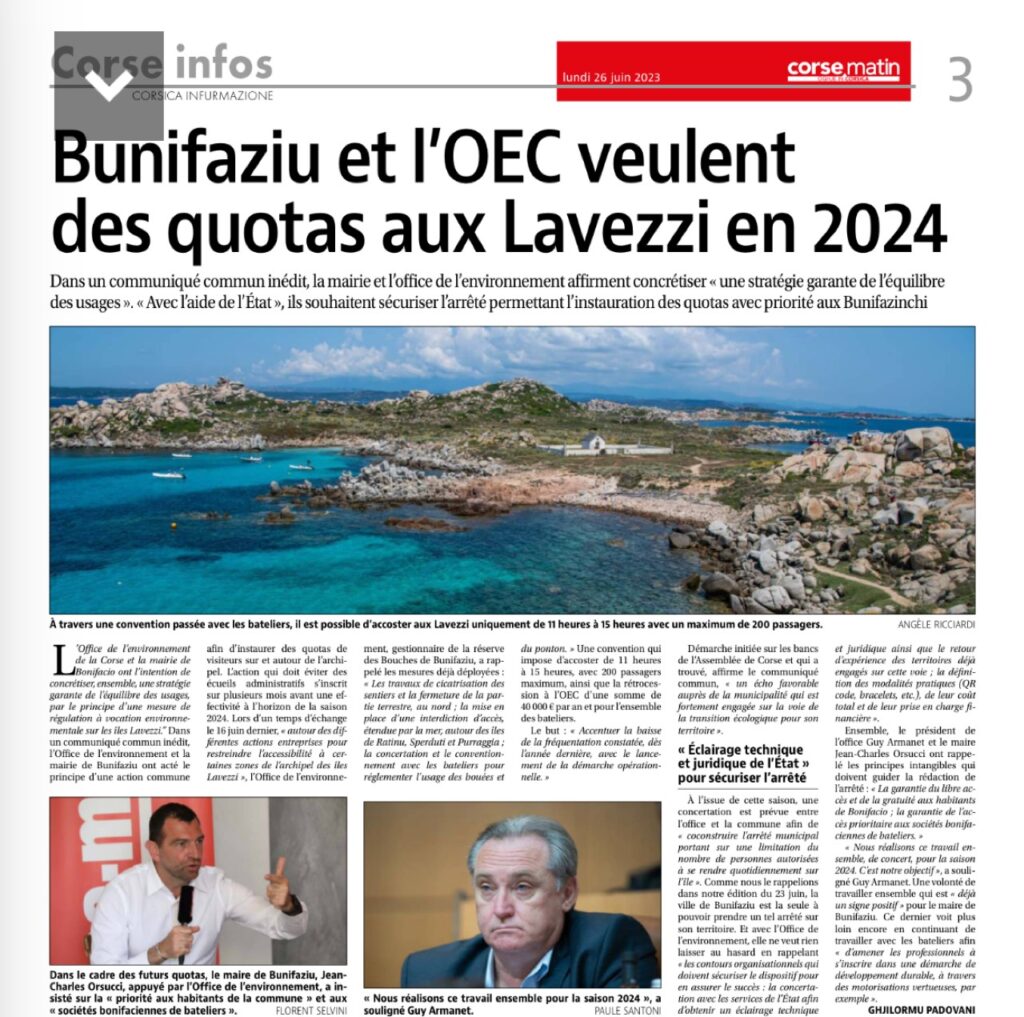 Bunifaziu et l’OEC veulent des quotas aux lavezzi en 2024