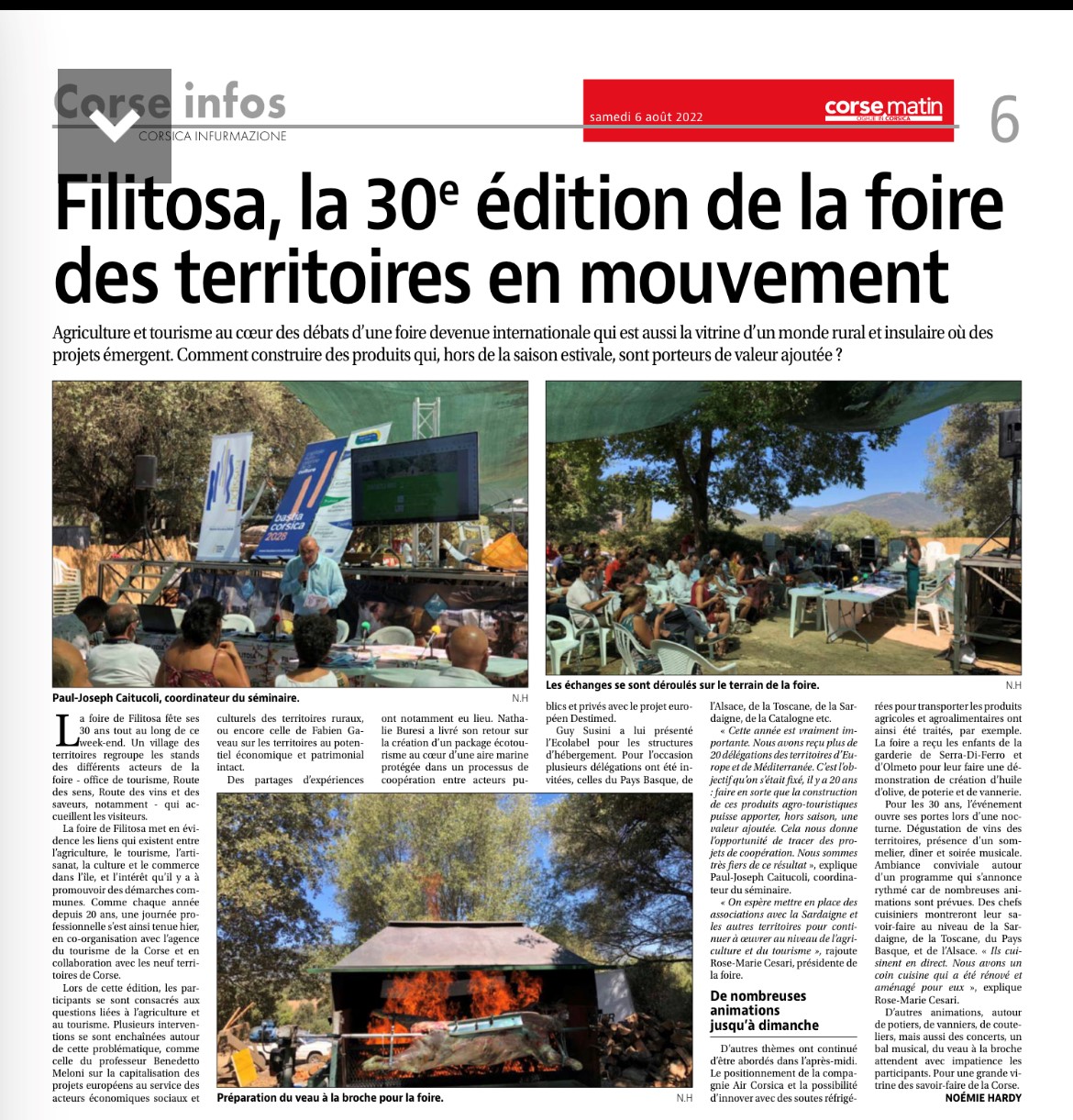 Corse-Matin : « Filitosa, la 30e édition de la foire des territoires en mouvement »
