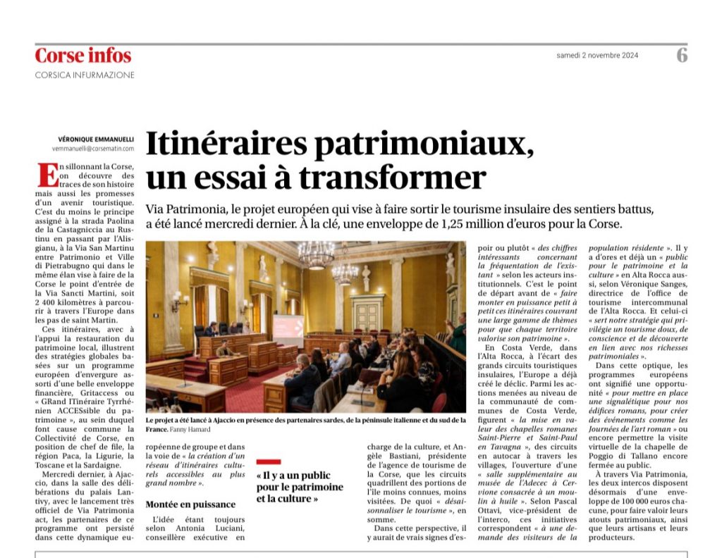 Corse-Matin : « Itineraires patrimoniaux un essai a transformer »