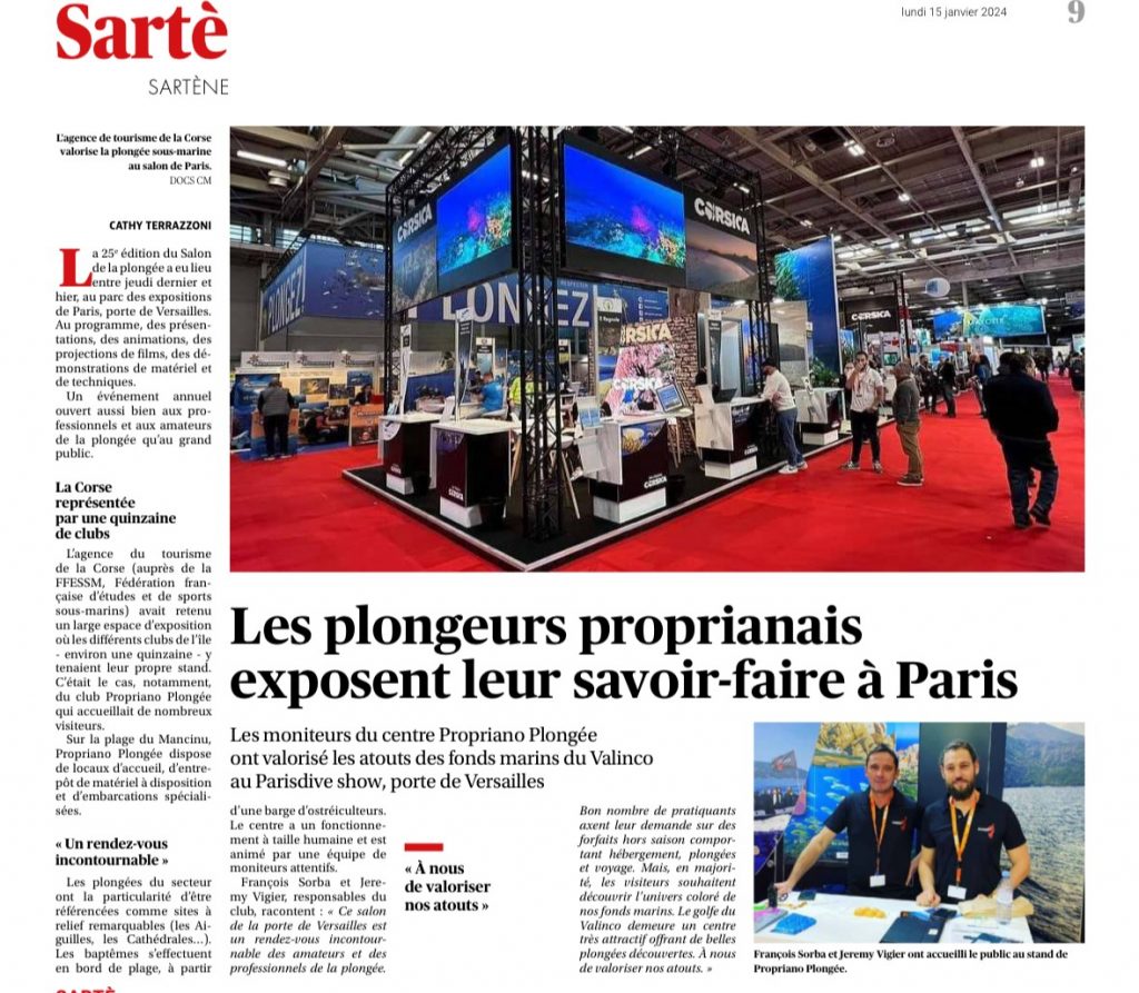 Corse-Matin : « les plongeurs proprianais exposent leur savoir-faire à Paris »