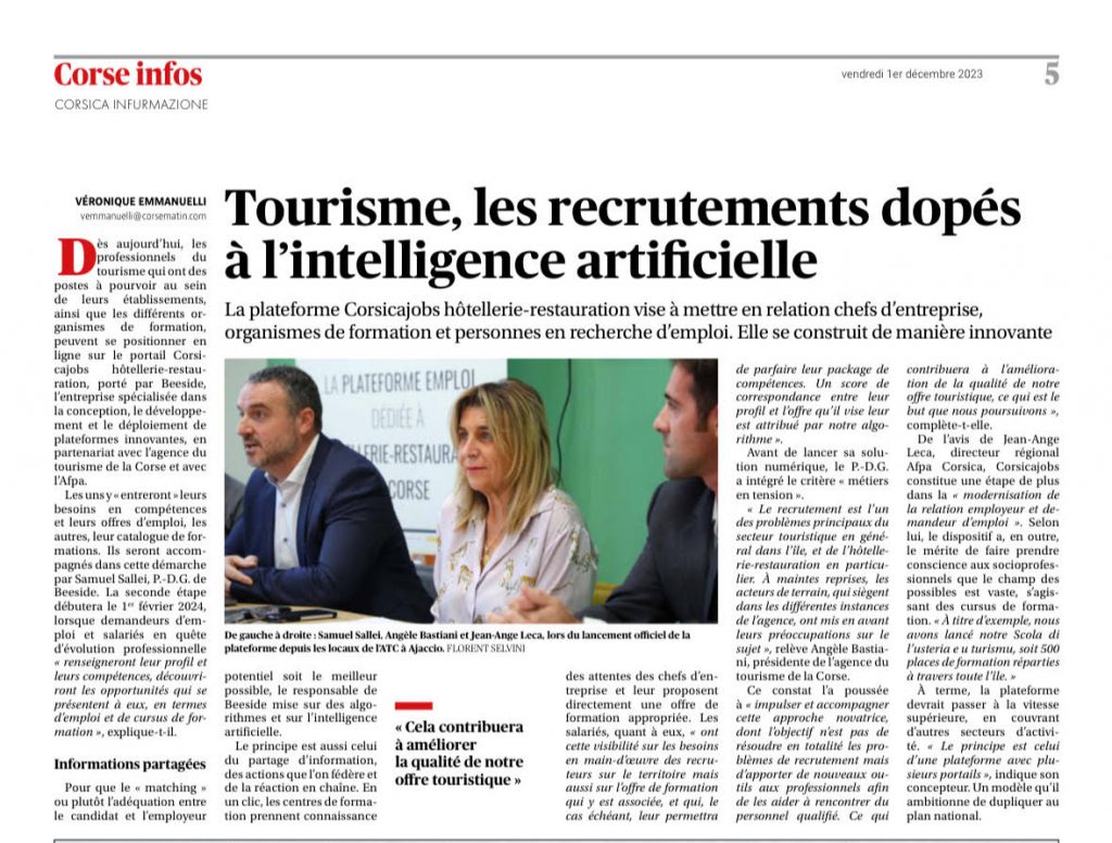 Corse-matin : Tourisme les recrutements dopés a l’IA