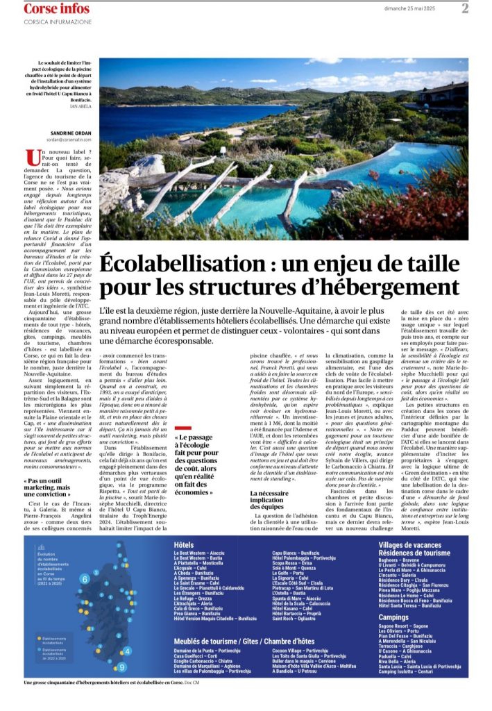 Accueil / Actualités / Corse-Matin : « Ecolabellisation un enjeu de taille pour les structures d’hébergement »