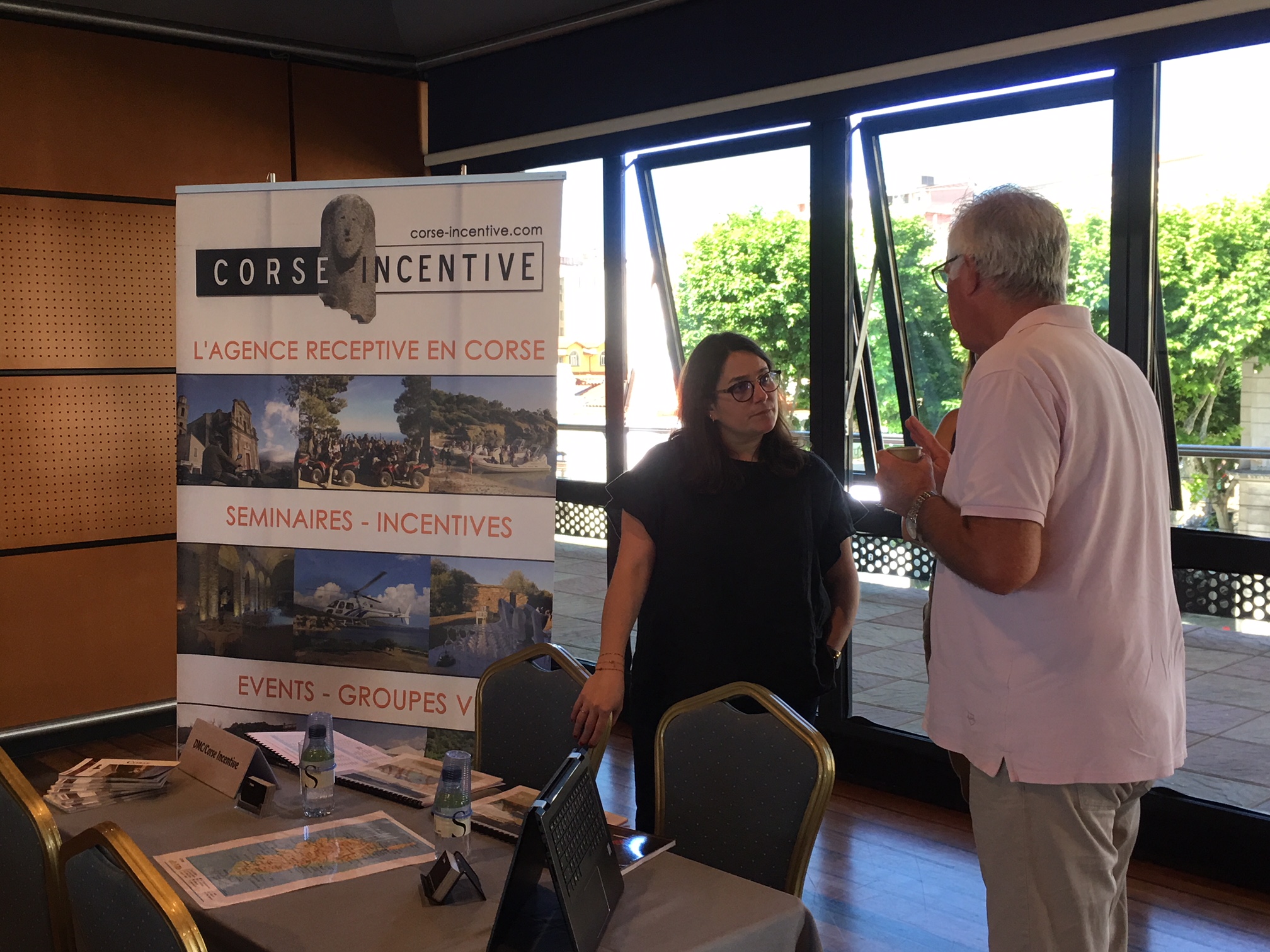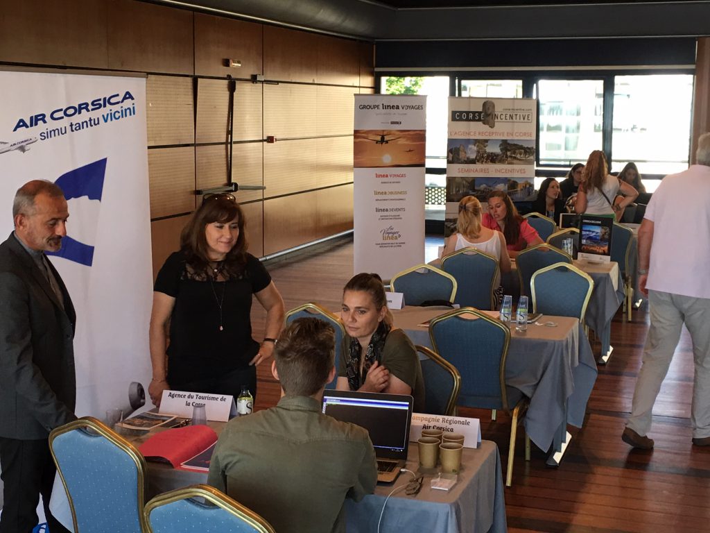 A ce titre, afin de favoriser les échanges entre ces prospects et les professionnels insulaires, l’ATC a organisé un mini workshop le 1er juin au Palais des Congrès  d’Ajaccio où l’ensemble des DMC affiliés au Cluster MICE  y étaient représentés, à savoir : Corsica Exclusive, Event Com, Linea Events, Cors’Alpha Touring, Corsica Events et Corse Incentive.