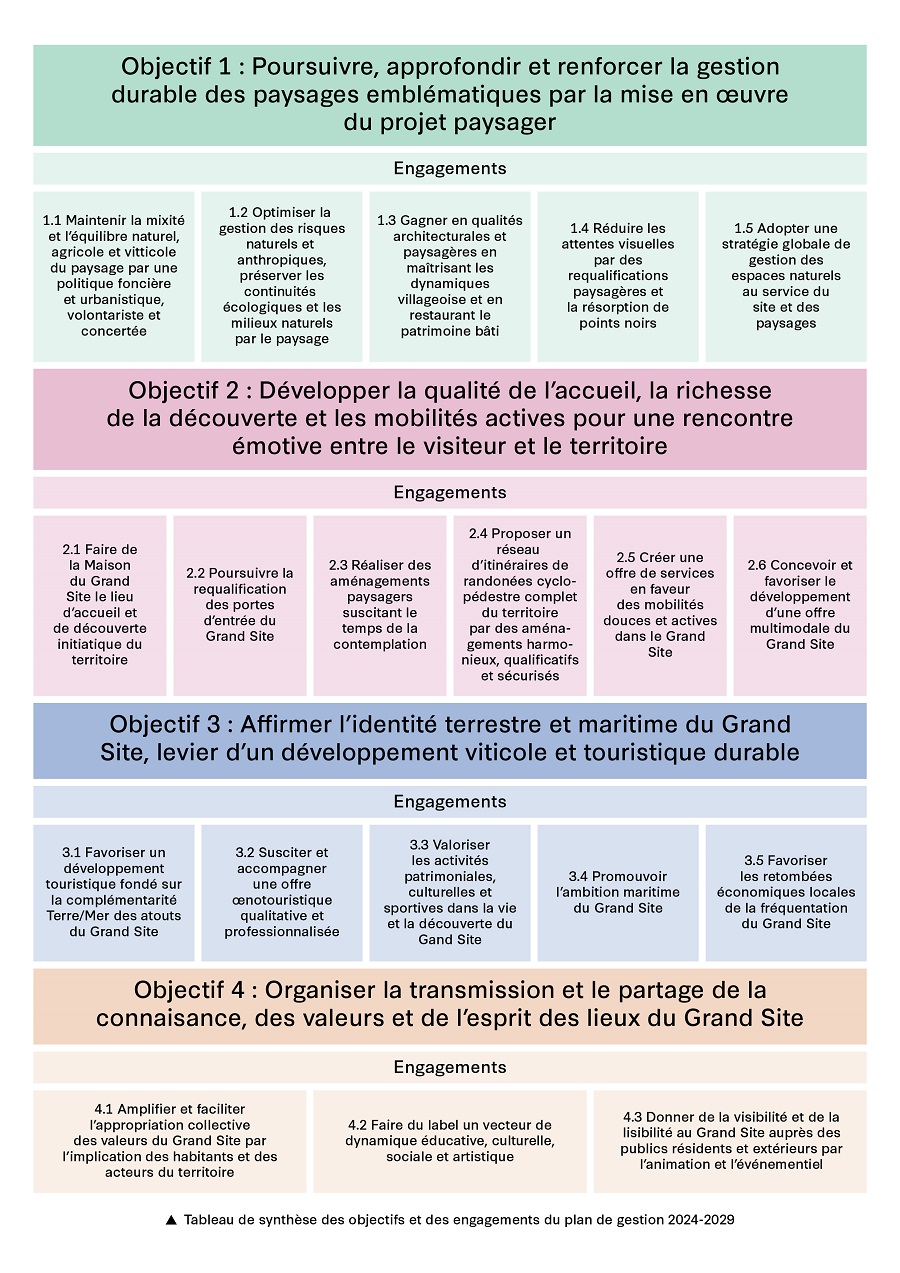 Tableau de synthèse des objectifs et des engagements du plan de gestion 2024-2029