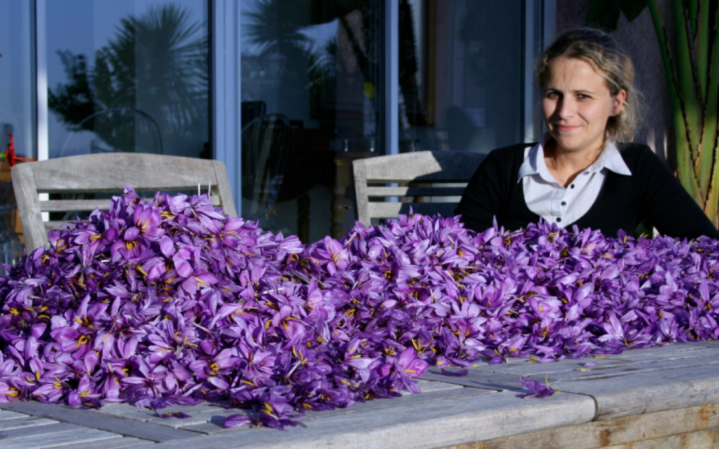 Anne est « tombée » dans la culture du safran il y a presque 20 ans … C’est durant ses études d’histoire à l’Università di Corti qu’elle s’éprit de cette épice aux saveurs lointaines. Son exploitation agricole située au lieu-dit Pantanu, à une vingtaine de minutes d’Aiacciu, direction Bucugnà, recèle bien des trésors : tomates rouges, vertes, jaunes, allongées ou rondes, plantes aromatiques d’ici ou d’ailleurs, chia, coriandre, fenouil vert, ciboulette chinoise, perilla rouge, persil plat ou frisé, fenouil, courgettes blanches ou vertes, rondes ou allongées, citron caviar, citron vert, jaune, aubergines, oignons, mains de Boudha, pomelos … la liste est longue ! L’exploitation d’Anne est un festival de couleurs, d’odeurs et de senteurs incroyables. Et puis bien sûr il y a le safran … qui aurait parié il y a 20 ans que cette épice aussi délicate qu’onéreuse poserait ses racines en Corse ? Anne l’a fait et c’est un succès … La récolte se fait en octobre-novembre, à la main, précautionneusement avec habilité et rapidité avant que le soleil ne se lève … Tel un véritable engagement envers sa terre, toute la famille d’Anne est au rendez-vous pour lui prêter main forte lors de cet évènement. Première « paysanne » comme elle aime se définir, à cultiver cette épice en Corse, elle est également fin gourmet et n’hésite pas à marier son safran pour des saveurs insolites : fromages de brebis, glace, et bien d’autres délices.