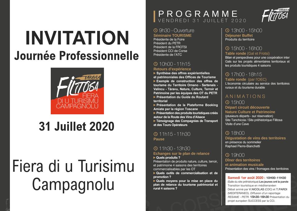 A cette occasion des tables rondes seront organisées. Avec pour thème :   la diversité de l’ « offre  territoire/patrimoine » de l’ensemble des territoires ruraux de la Corse. Ou encore comment concilier économie circulaire et tourisme. La foire se clôture le Dimanche  2 Août.