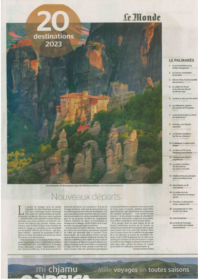 Comme chaque année, « Le Monde » a révélé son palmarès des 20 destinations coups de cœur, 10 en France métropolitaine, 5 en Europe et 5 dans le reste du monde.