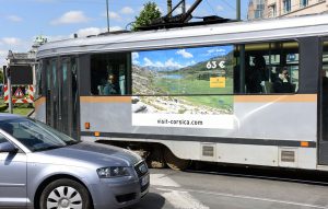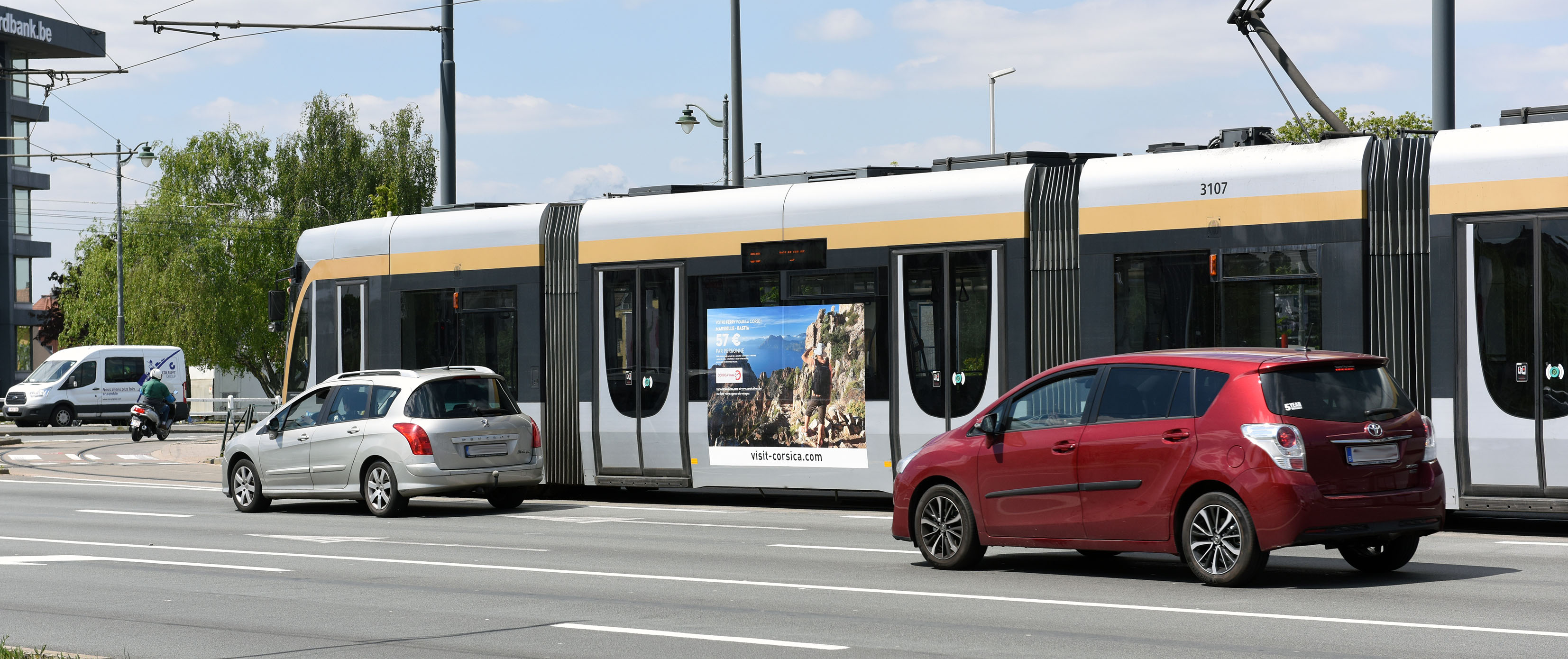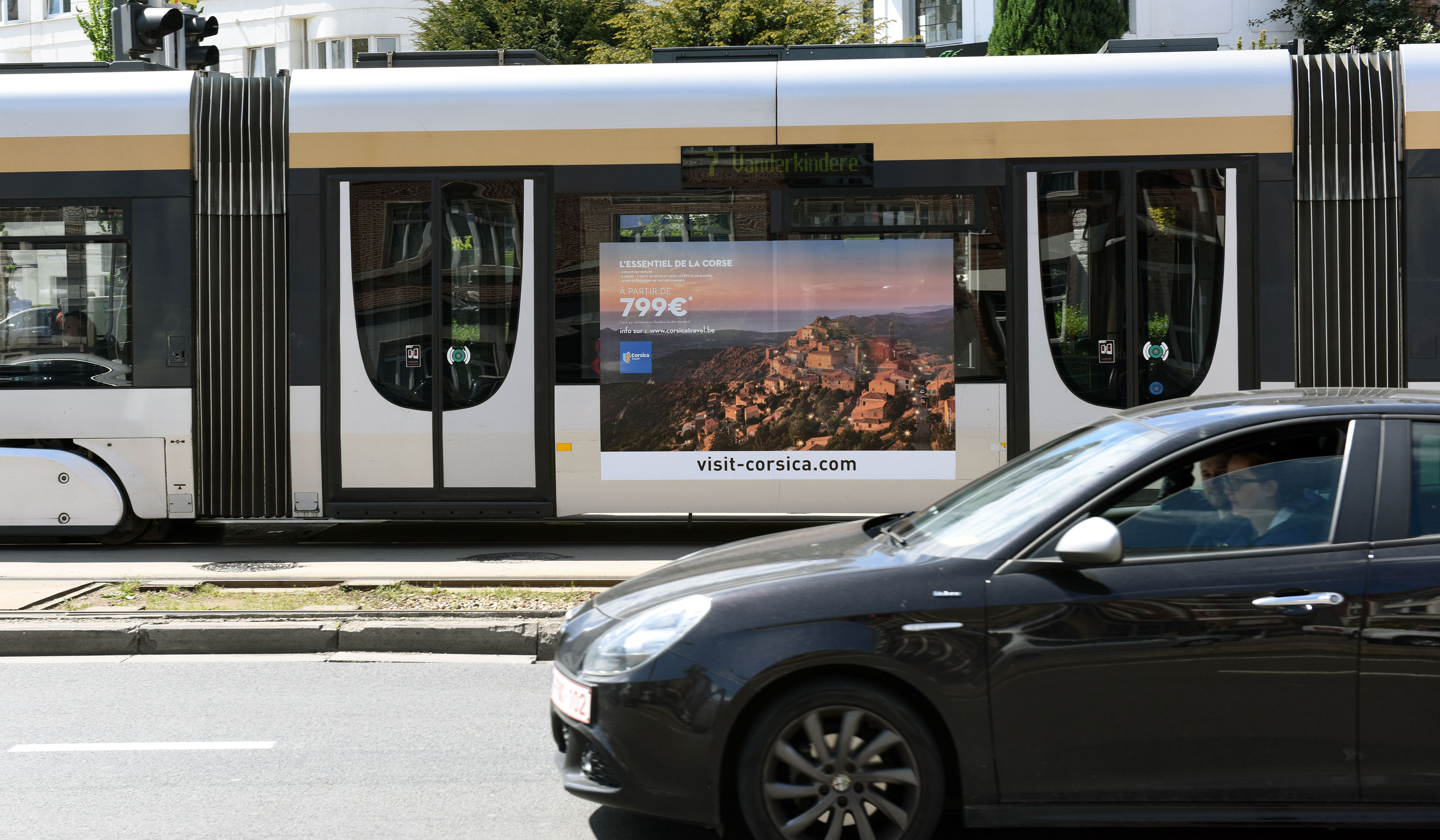 La Corse communique actuellement sur les tramways de la capitale belge.