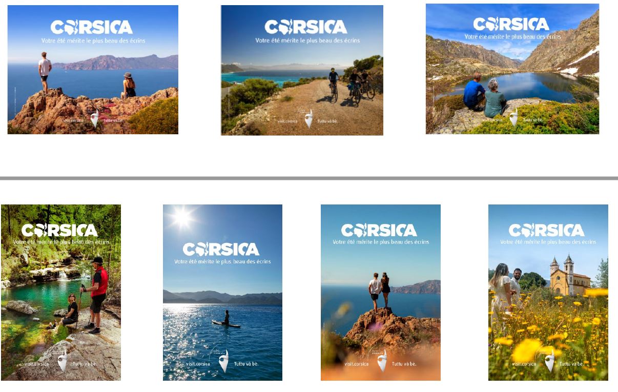 «Votre été mérite le meilleur des accueils». Ce message met en scène une sélection de professionnels qui œuvrent pour le tourisme en CORSE: hôtelier, restaurateur, conférencier, moniteur de sport nature, artisan etc… accompagné d’un message qui globalise cette promesse d’accueil et de professionnalisme à l’ensemble des professions de chaque secteur. Ce message est porté par une campagne presse magazine nationale, ainsi que plusieurs vagues d’affichage et un dispositif internet (display et social ads). Cette campagne sera active également sur juin 2021 avec un ciblage comparable à la campagne «écrin».
