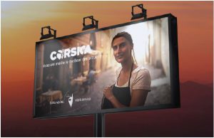 Ce concept traduit par le message «FORZA NATURALE» signe une campagne qui montre la CORSE pour ce qui la différencie le plus des autres îles de Méditerranée à savoir «ses montagnes, sa nature sauvage, ses lacs / torrents… son eau donc mais aussi sa convivialité et sa culture marquée».