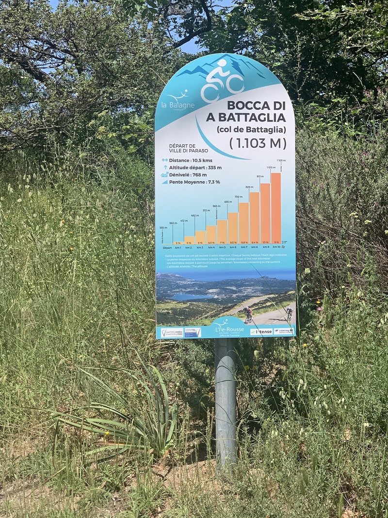 A noter qu’à A Bocca di a Battaglia, col emblématique du territoire est implanté un panneau de signalétique du programme Intense (projet de coopération transfrontalier dont l’ATC, la région Sud Est, l’Italie et la Sardaigne sont partenaires). La Balagne s’est structurée en matière de cyclo tourisme et VTT et à procédé au balisage de la route menant au Col. Les panneaux indiquent les kilomètres restant, l’altitude ou encore le pourcentage de pente.