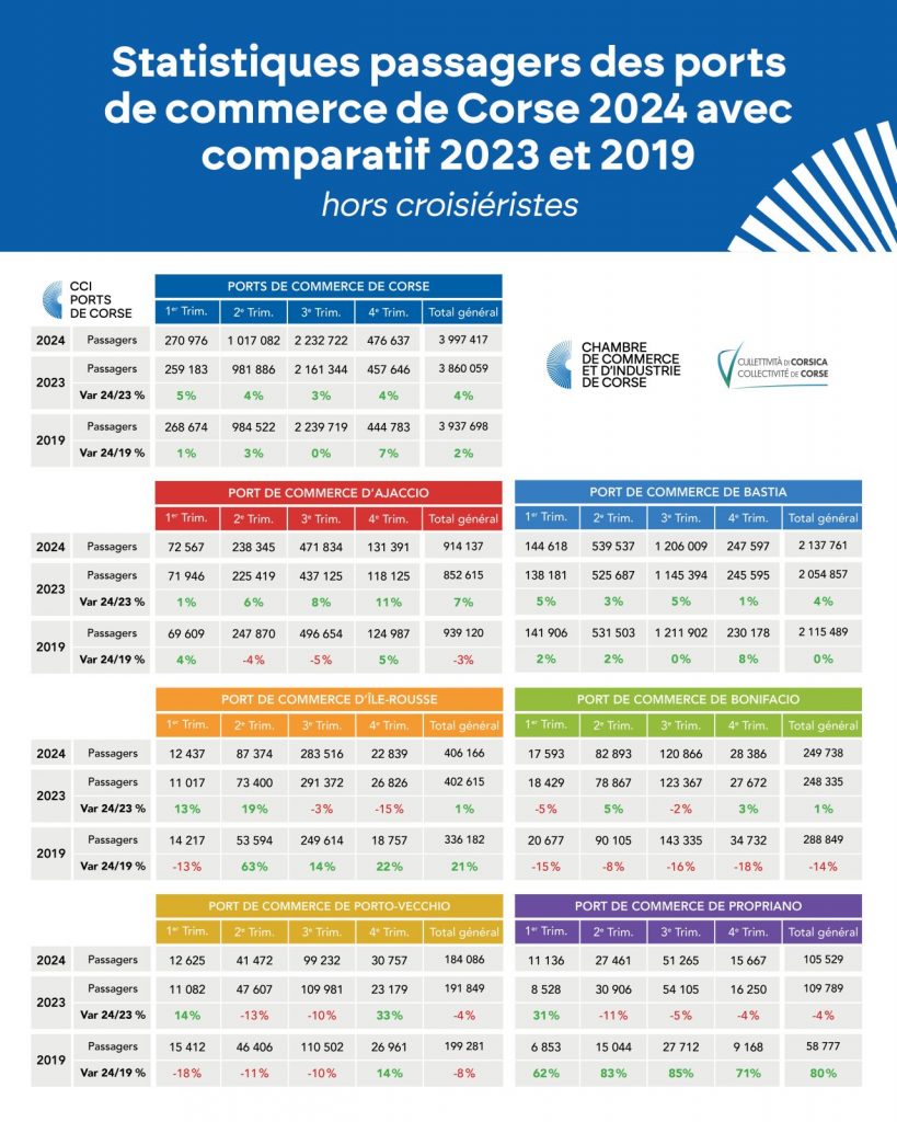 Statistiques passagers des Ports de Commerce de Corse de l’année 2024 avec comparatif 2019 et 2023.