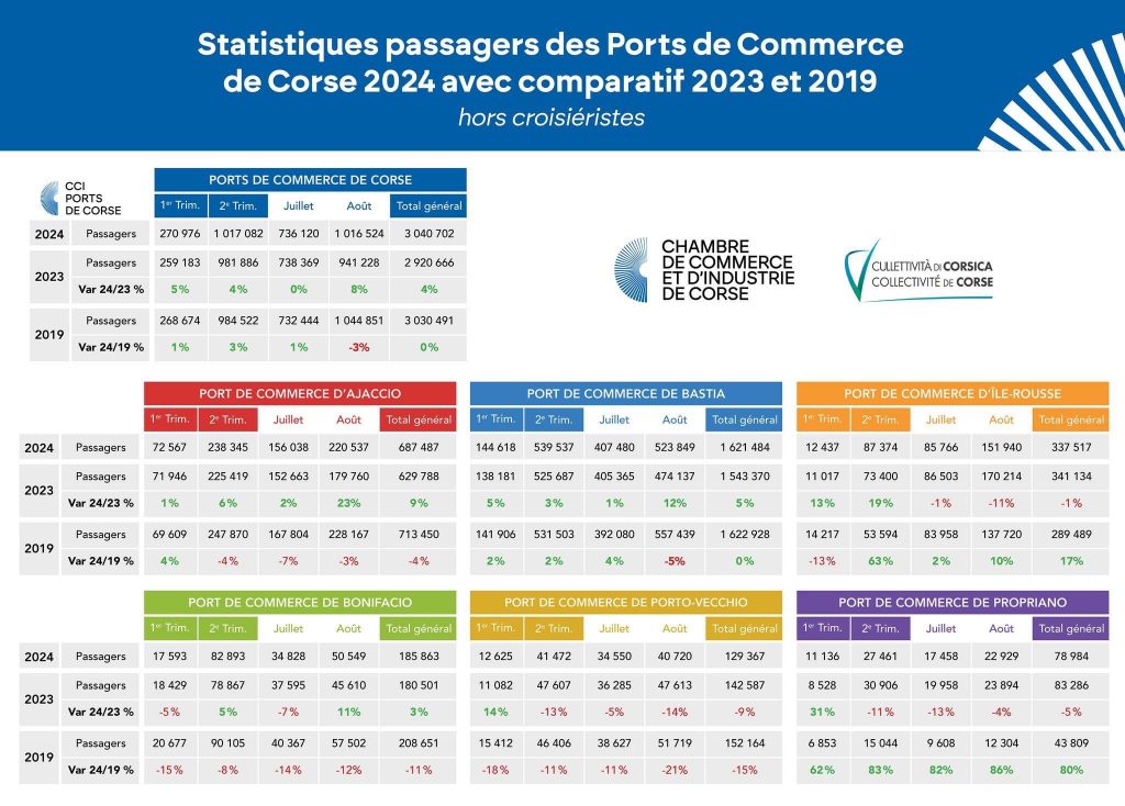 Accueil / Actualités / Transport : Statistiques passagers des Ports de commerce de Corse 2024 avec comparatif 2023 et 2019