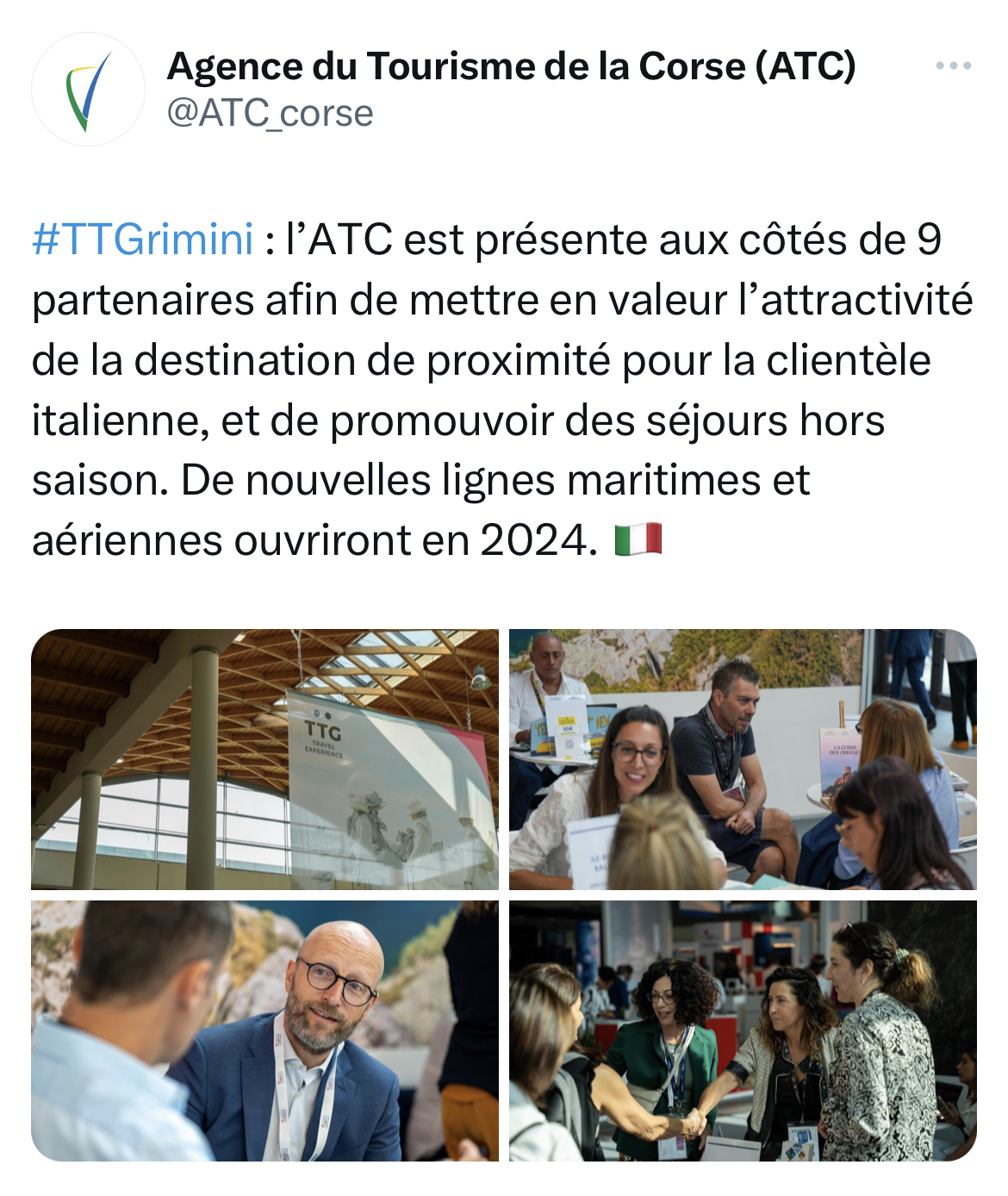 Cela a également été l’opportunité pour réaliser une analyse détaillée des campagnes que l’Agence mène depuis plusieurs mois dans les bassins de Rome et de Milan. Selon les tour-opérateurs et les agences de voyage italiens, la visibilité renforcée de la Corse sur l’ensemble de nos canaux de diffusion tout au long de l’année a été très bien reçue.