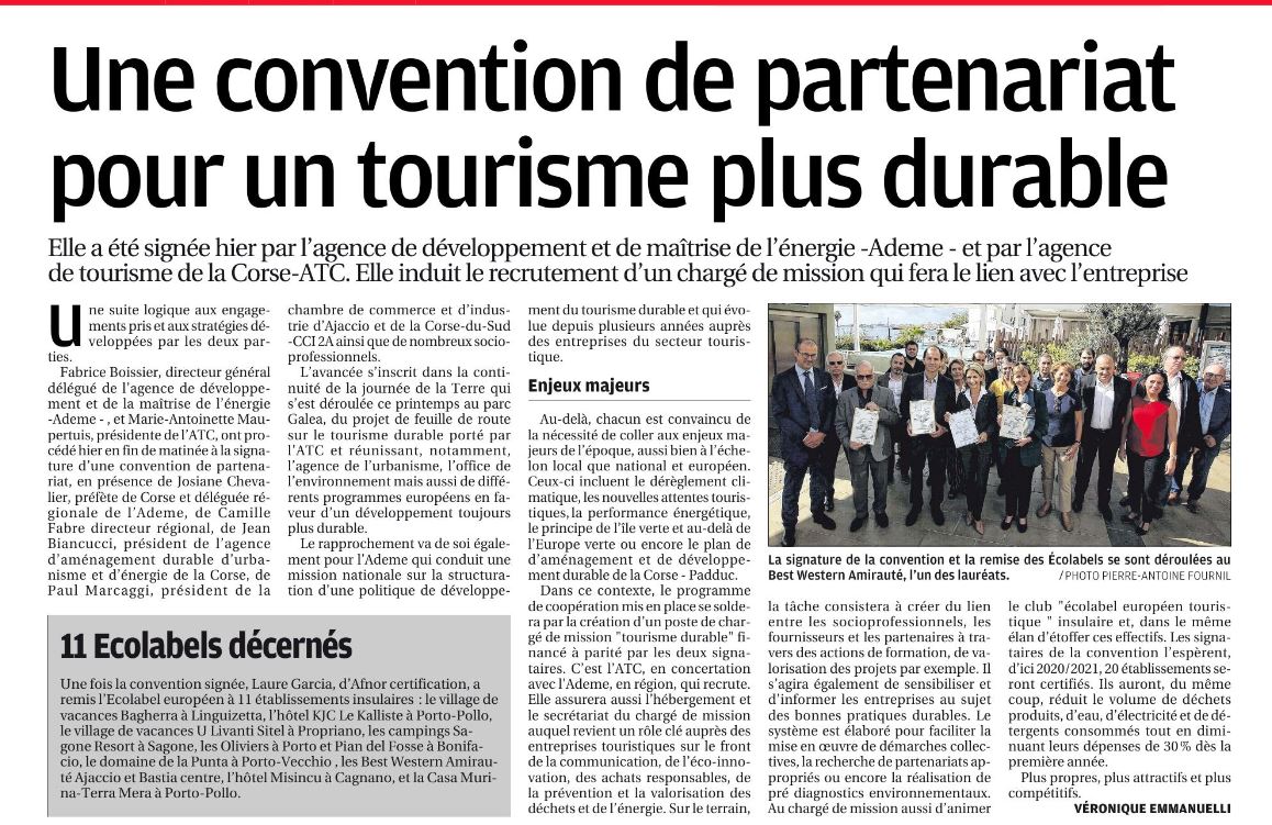 A lire sur Corse-Matin du 17 octobre 2019