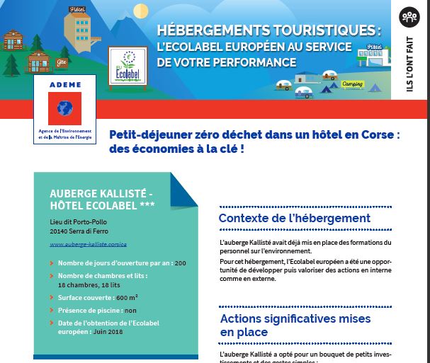 En 2017, l’ADEME a lancé l’AAP Hetel dans le but d’inciter et d’accompagner techniquement et financièrement une vingtaine d’établissements touristiques à l’obtention de l’Eco-Label Européen, dont un en Corse :…